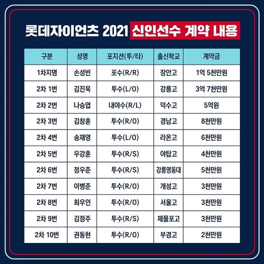 2021 롯데자이언츠 신인선수들과의 계약을 무사히 마쳤네요 ㅎㅎ